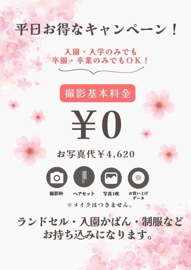 【入園入学キャンペーン】限定の桜背景で撮影いたします♪ご予約お待ちしております!