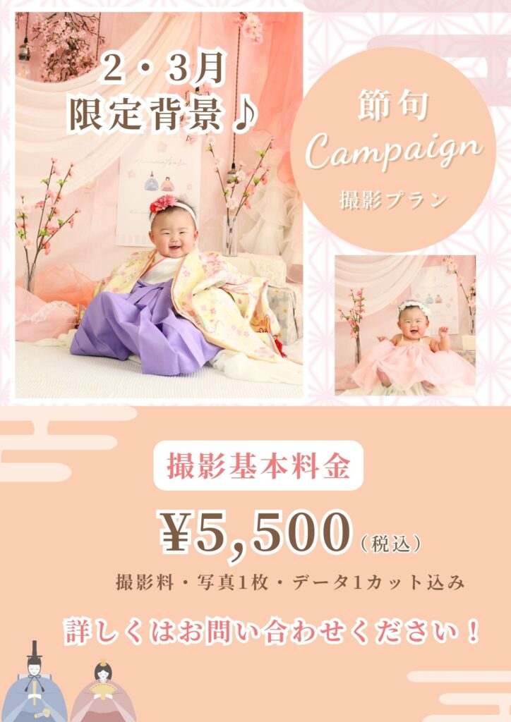 【2・3月限定】節句撮影キャンペーン受付開始♪限定背景で撮影いたします